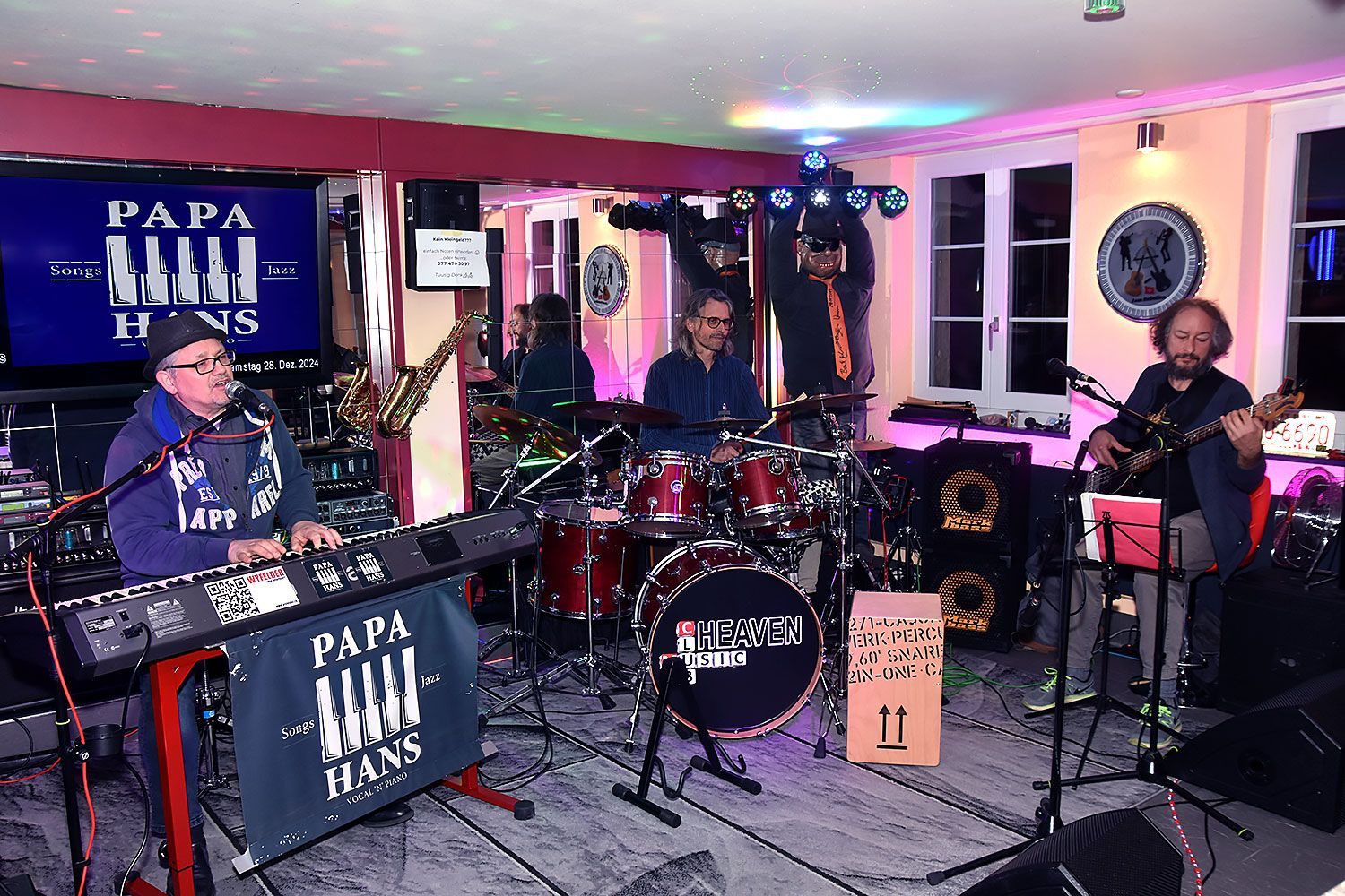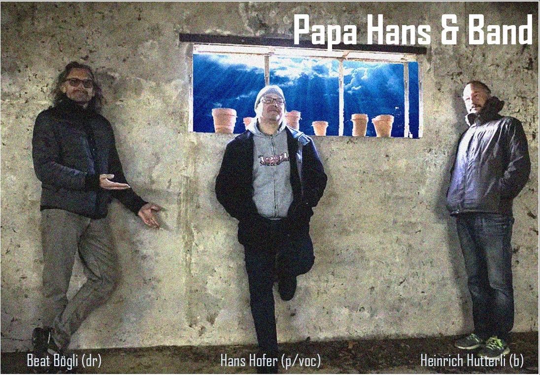 Aktuell ist Papa Hans auch im Trio Papa Hans & Band unterwegs. Mit den beiden langjährigen Weggefährten Heinrich Hutterli am Bass und Beat Bögli am Schlagzeug gründen wir bereits die dritte Band zusammen. Schon bei den Cover-Bands "The Duschvorhang" und "Froilein Heidelberger" waren wir bei der Gründung beteiligt. Bei Papa Hans & Band spielen wir aber mehrheitlich Papa Hans Songs. Dies sind alles deutsche Lieder mit Themen für Erwachsene, welche nachdenklich, kritisch, emotional und lustig sein können. Sie sind aber immer groovig aus einer Mischung aus Soul, Blues, Jazz und Reggae. Man könnte den Stil als Deutsch-Soul bezeichnen. Ergänzend haben wir auch noch eine handvoll Klassiker wie z.B. Route66, My funny Valentine oder Valerie dabei, welche aber jeweils in einem neuem Gewand daher kommen. Die Musik ist zum Zuhören oder zum Tanzen gedacht und wenn Leute das Tanzbein schwingen, können wir die Soloteile durchaus zu Groove-Interplay-Esktasen ausufern lassen. Mit der kleinen Formation sind wir sehr flexibel und finden in kleinen und grossen Orten Platz. Wir spielen an Hauspartys, Clubgigs, Open Airs, Firmenevents, Vereinsanlässe usw. Was wir sicher nicht können ist Schlager, Covers, Klassik und den Ententanz.